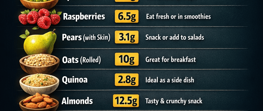 Fruits like raspberries and pears are great sources. Vegetables such as broccoli and Brussels sprouts also contribute fiber. Whole grains, like quinoa, provide significant fiber as well. Legumes are protein-rich and high in fiber.Lastly, nuts add dietary fiber and nutrients.