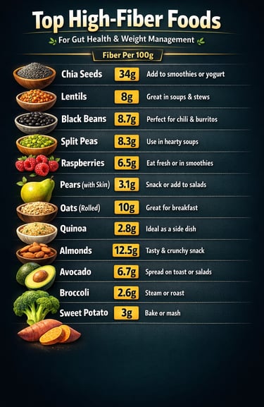 Sources include oats, beans, lentils, fruits, and vegetables, which promote fullness and assist in weight management.